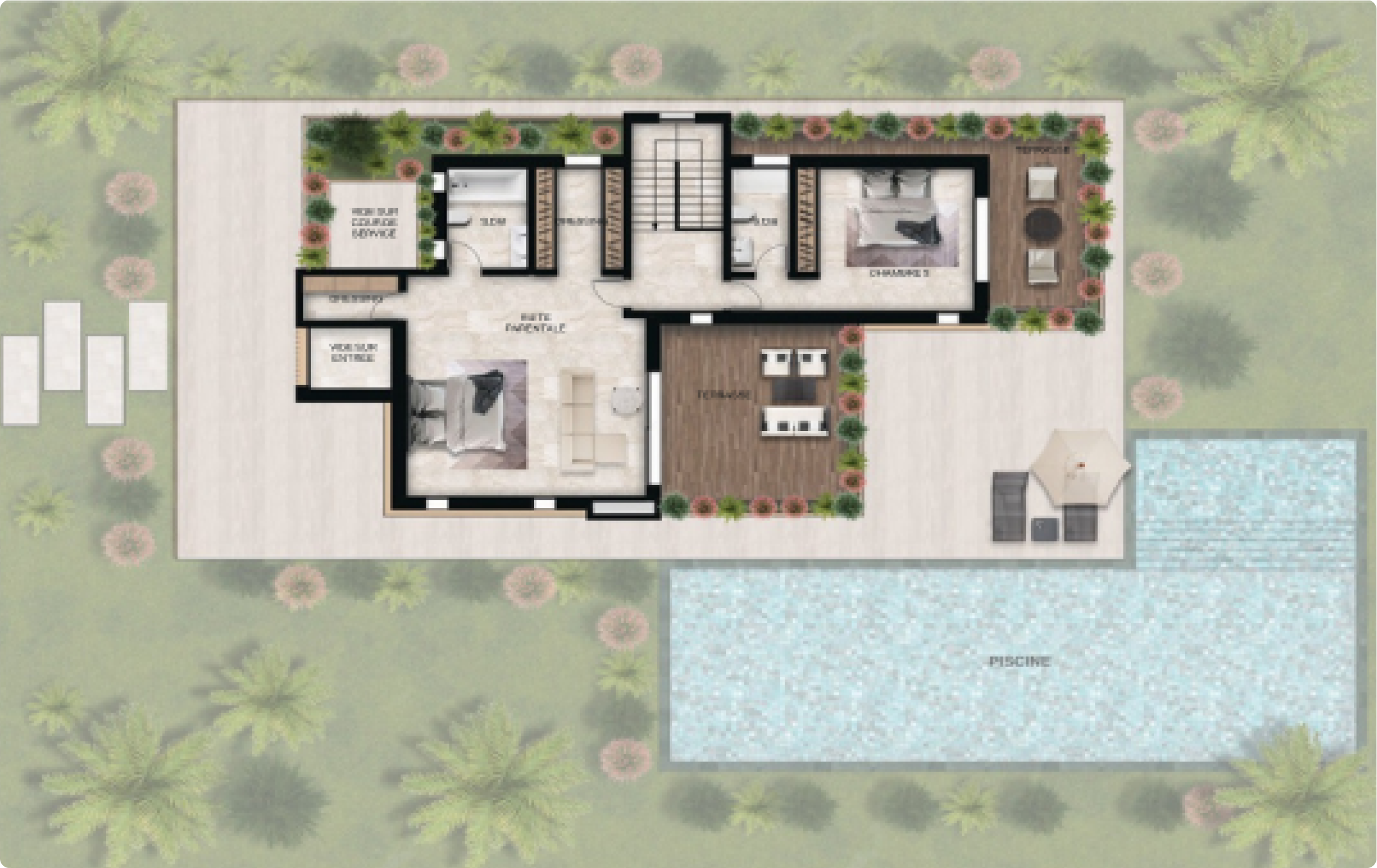 Le projet vise à maximiser la connexion avec la beauté des verts luxuriants des jardins et la beauté de Marrakech.