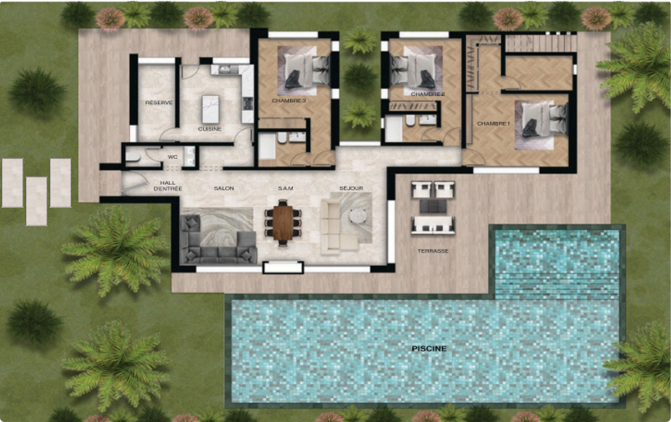 Le projet vise à maximiser la connexion avec la beauté des verts luxuriants des jardins et la beauté de Marrakech.
